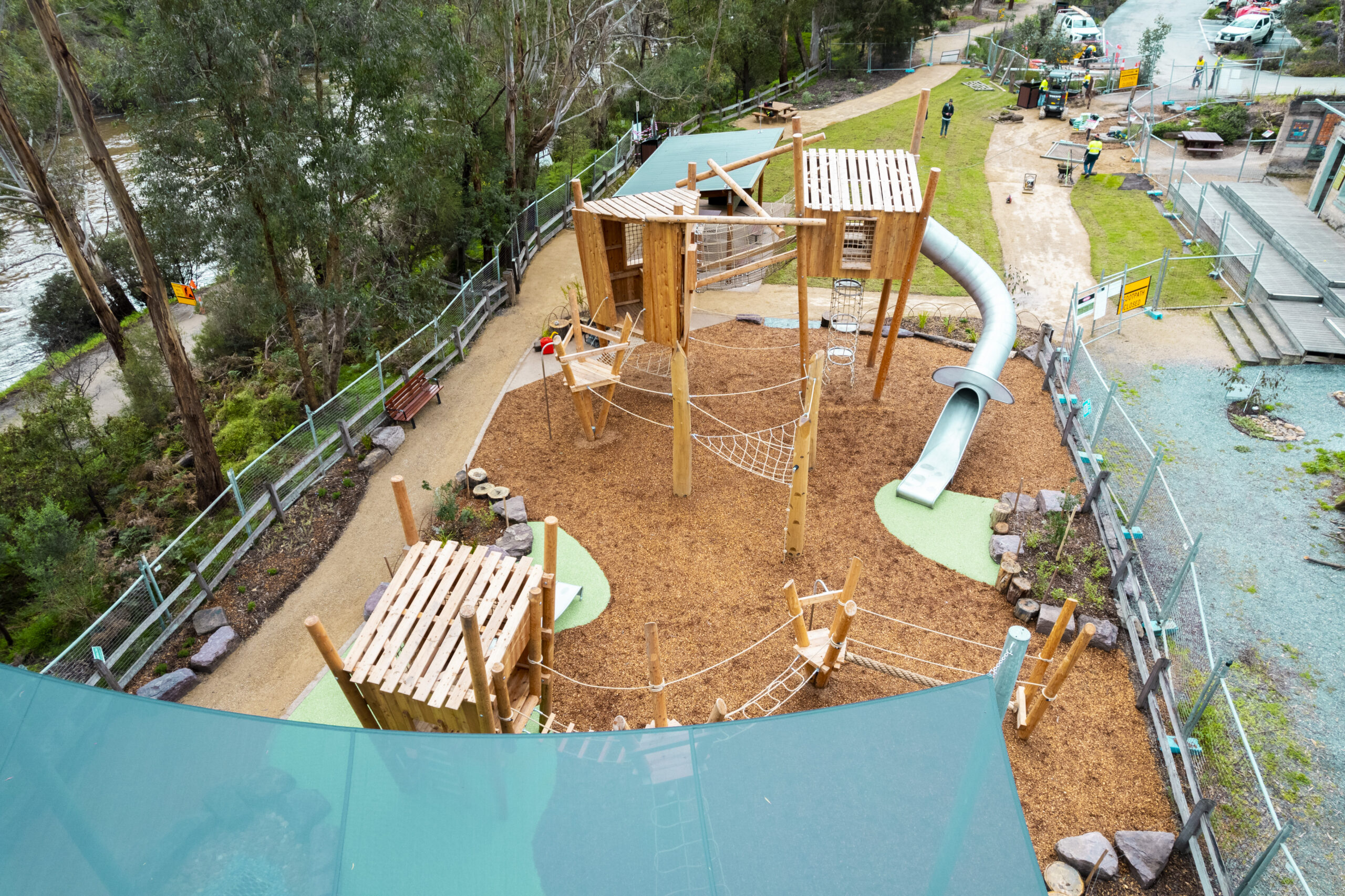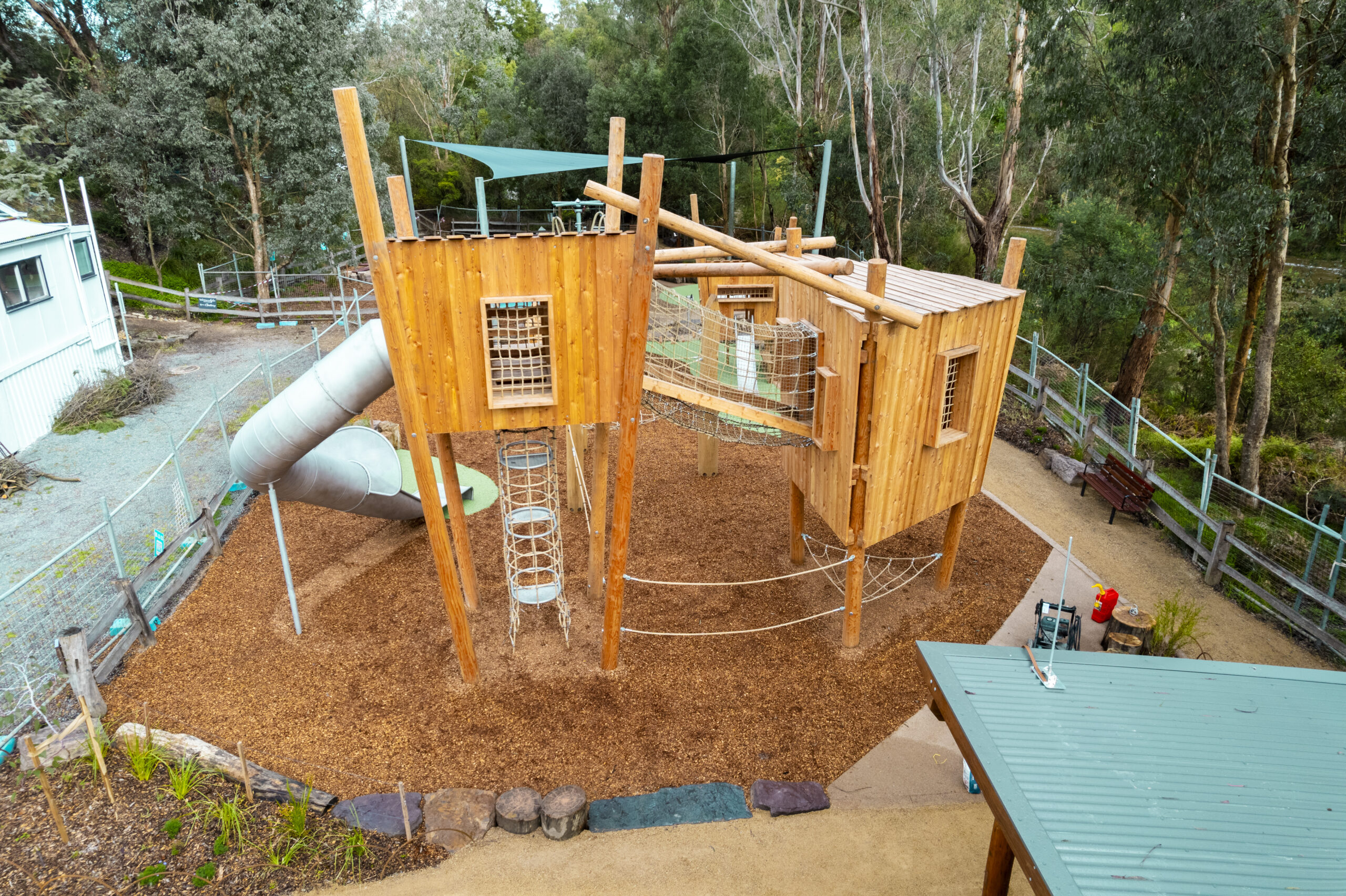 Wonguim Wilam Playspace, located in the heart of Warrandyte, Victoria, is a popular public open space frequented by families and community groups.
